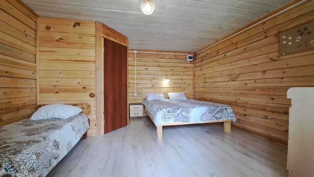 В номере 1спальная кровать и 2спальная, санузел (душ, туалет, раковина), смарт-ТВ, вешалка, комод, тумбочка, стул, постельное и полотенца, туалетные принадлежности (гель, шампунь, жидкое мыло, т/б), тёплый пол.